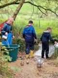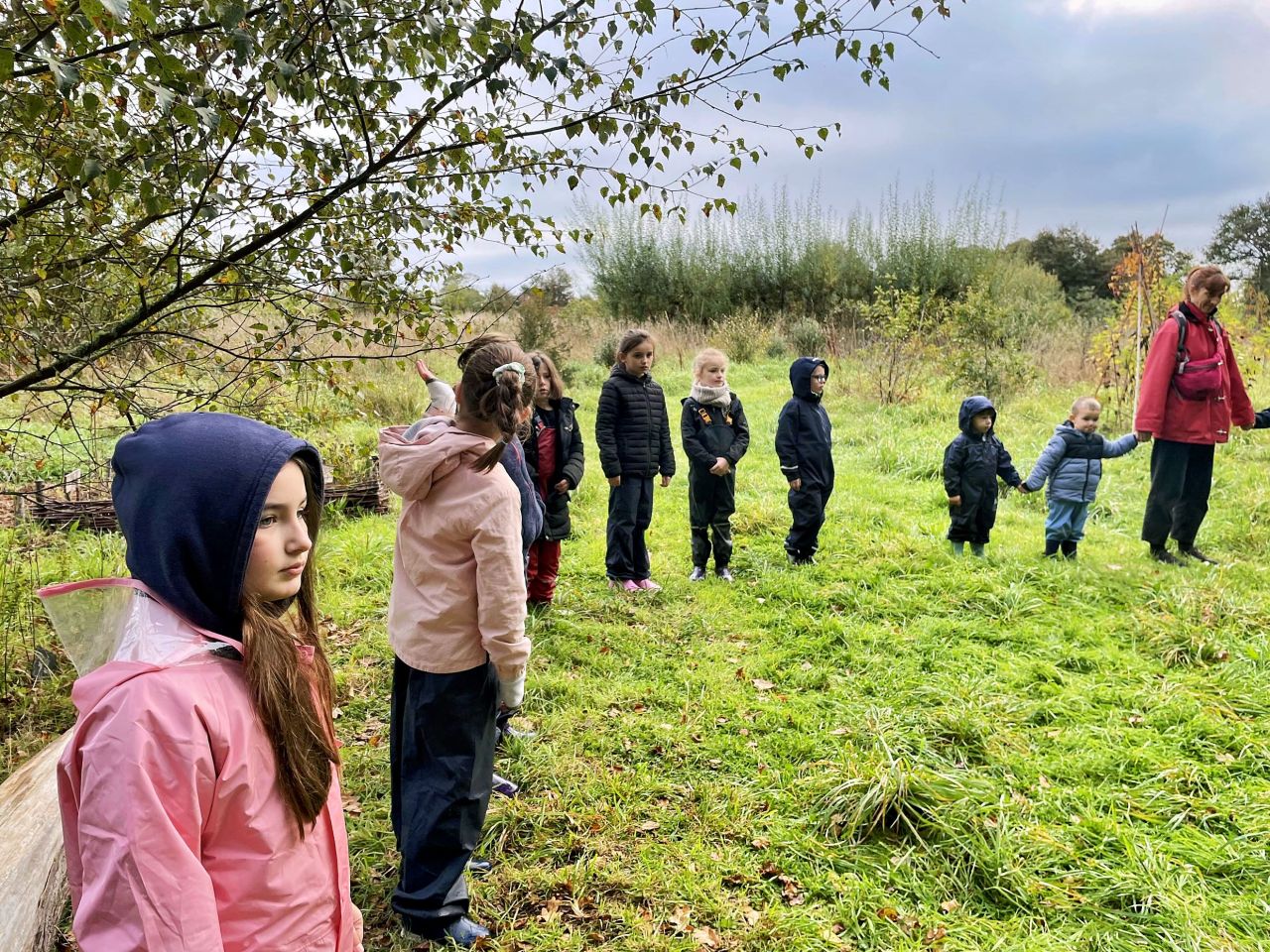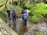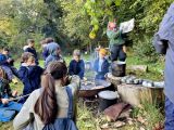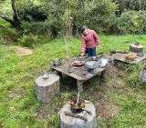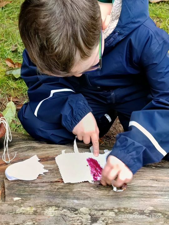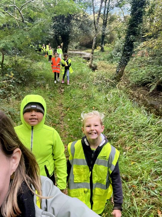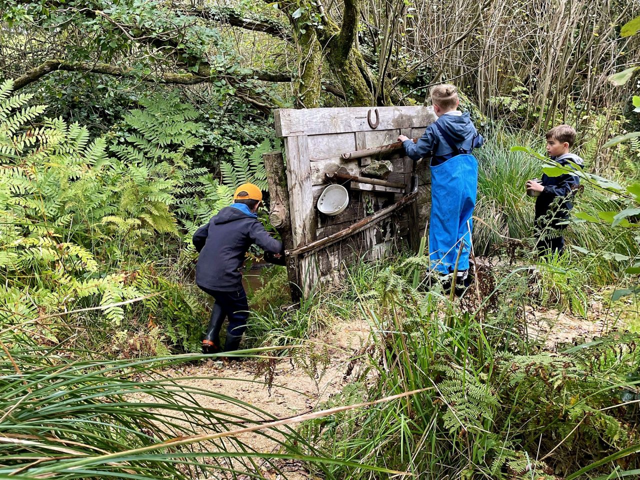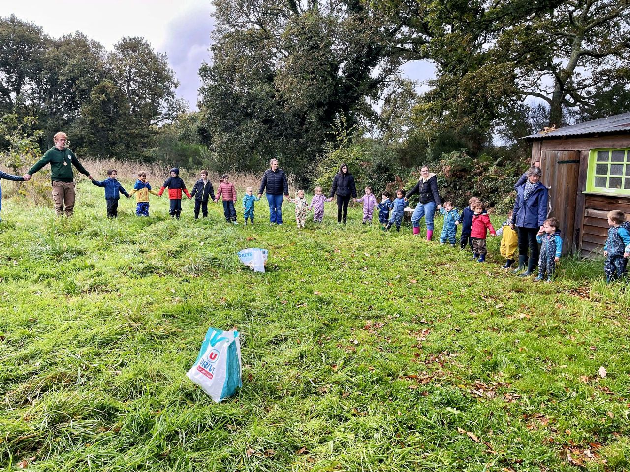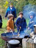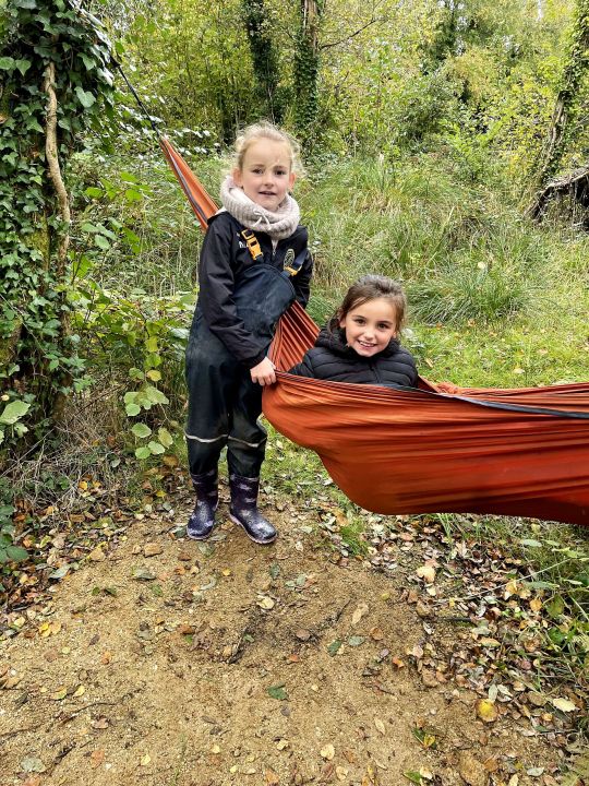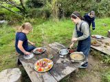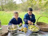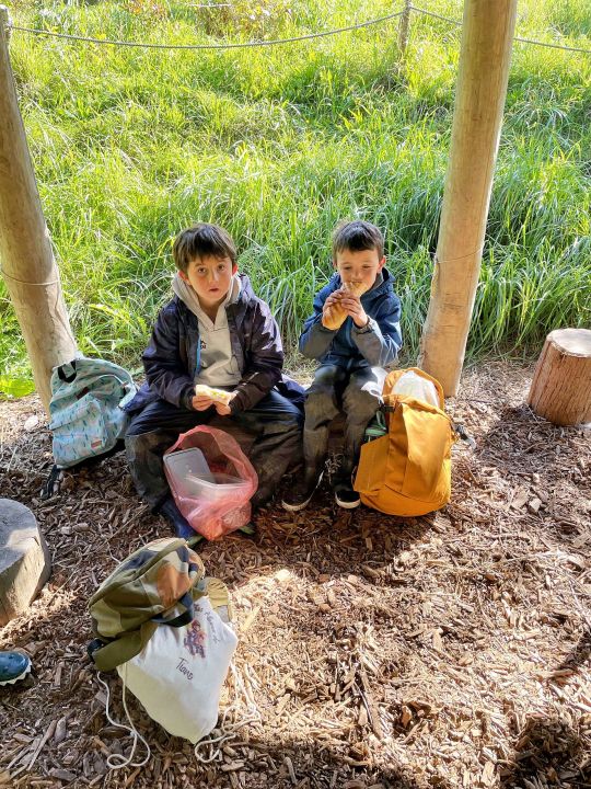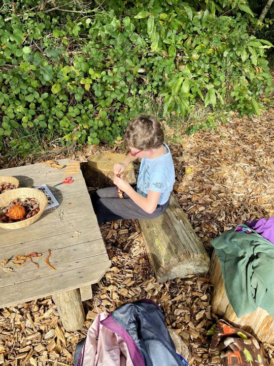 Aujourd’hui, les élèves de CE2/CM1 sont allées à la Forest School de Ploneis « Autour du feu ». Une journée sous le soleil où les élèves ont expérimenté la pédagogie par la nature. Les enfants ont appris notamment à se servir d’outils pour cuisiner des brochettes de pommes au sucre et à la cannelle, cuites au feu de bois ou à utiliser les trésors de la nature pour des projets créatifs. Ils ont pu jouer longtemps dans les différents espaces proposés dans la prairie et la forêt, notamment « la cuisine de la gadoue » dans laquelle les élèves ont préparé des chocolats et des gâteaux et « au coin des castors » où ils ont construit un barrage dans le petit ruisseau.
